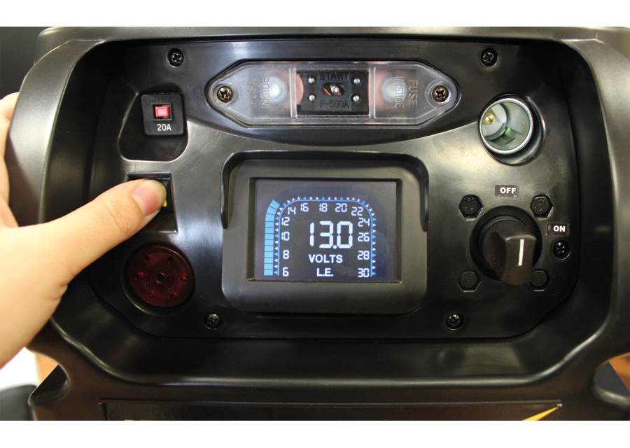 Voltmètre digital rectangulaire, rétro-éclairé, permettant de connaître les niveaux de charge d'un simple coup d'œil