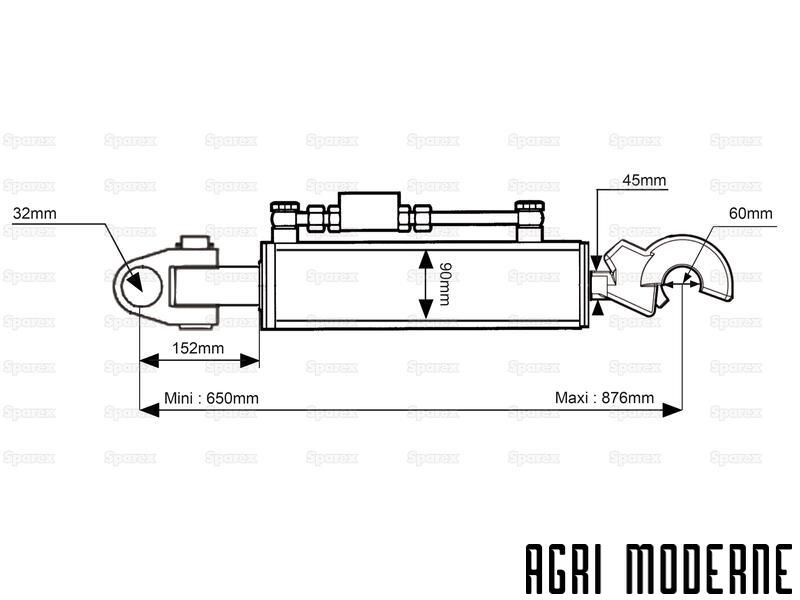 Bdp hydraulique noix/crochet - cat 3/3 - 650/876mm